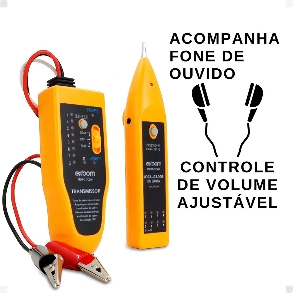 Kit Localizador Testador de Cabos Zumbidor com Estojo e Receptor com Led e Aviso Sonoro EXBOM - FEPRO - TC350