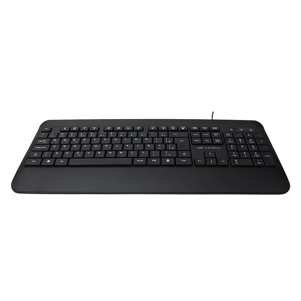 Digitacao confortavel! Este e o KB-M100 da C3Tech, possui apoio de punho integrado ao teclado, garantindo o maior conforto ao uso do dia-a-dia. Ele conta com 12 teclas de atalho multimidia, ajuste de altura, layout ABNT2 e estrutura anti-respingo. A configuracao e simples, basta conectar a uma porta USB e estarapronto para uso.